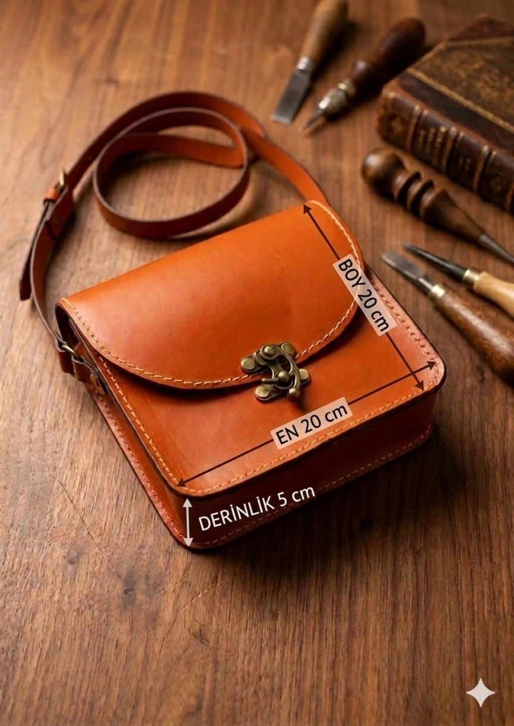 Zamansız tasarımı ve usta ellerden çıkan detaylarıyla stilinizi tamamlayın. Geleneksel deri işleme teknikleriyle üretilen bu çanta, sadece bir aksesuar değil; yıllandıkça güzelleşen ve karakter kazanan bir yol arkadaşıdır.