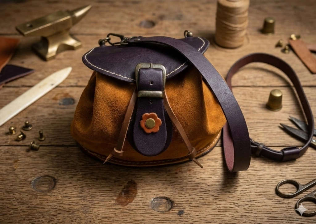 Hakiki Deri El İşçiliği Mini El Çantası / Cüzdan - Bordo ve Taba