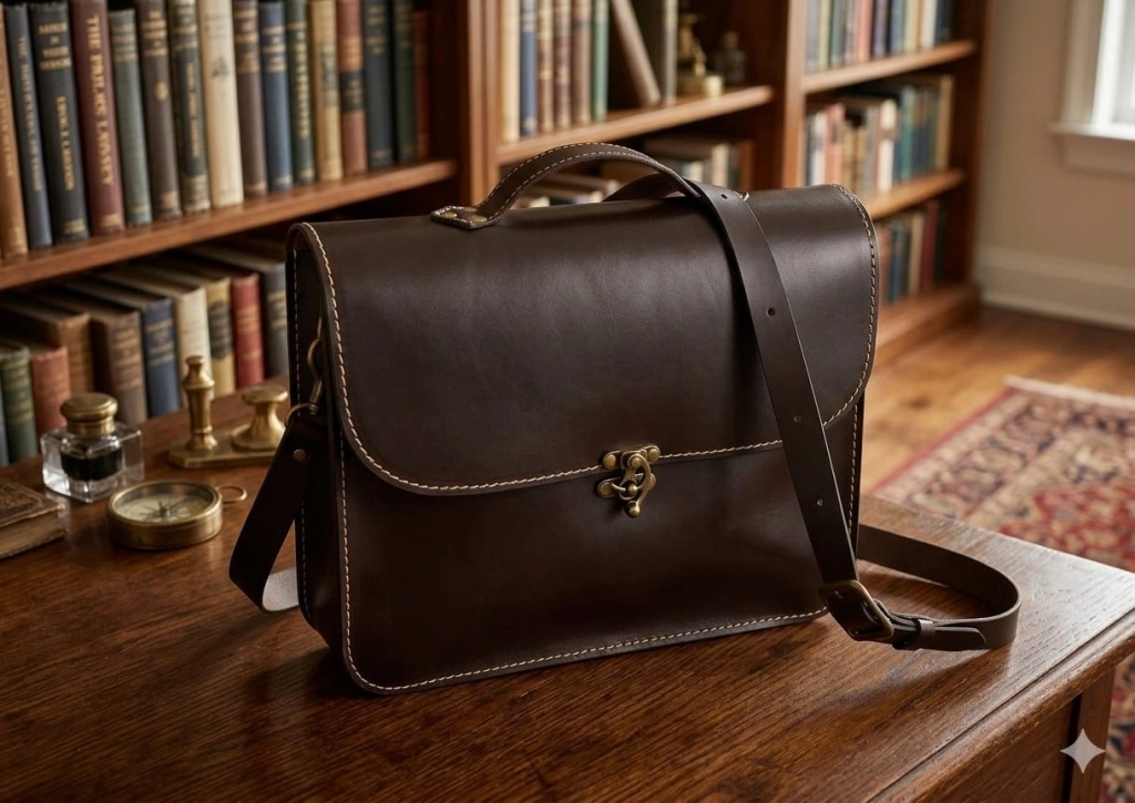Premium Hakiki Deri El Yapımı Evrak ve Laptop Çantası - Antik Kahve