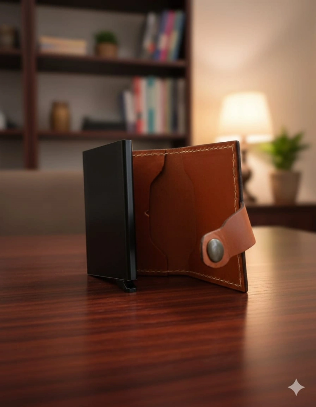 Hakiki Deri Mekanizmalı Akıllı Cüzdan Kartlık